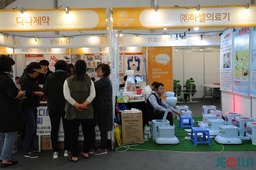 장흥 통합박람회가 열리고 있는 9일, 박람회장에는 건강에 관심 있는 인파가 대거 몰렸다. 그들은 건강 보조기를 직접 체험하거나, 자신의 건강 수치를 측정하기도 했다.