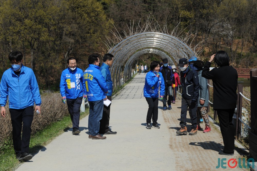 5일, 광주 서구을 양향자 후보가 풍암호수공원에서 도보유세를 가졌다. 수년 동안 텃밭을 다져온 덕분인지 양 후보를 살갑게 맞아주는 시민들이 많았다.