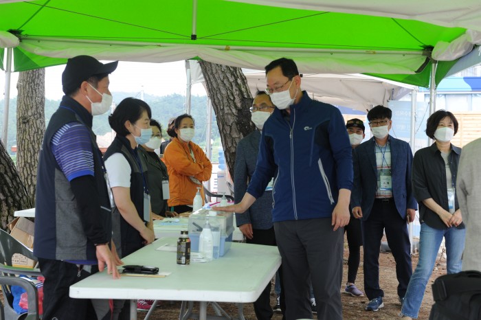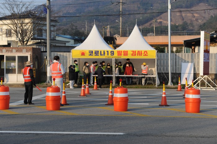 이른 아침 코로나19 발열검사에 나선 해남군 공무원